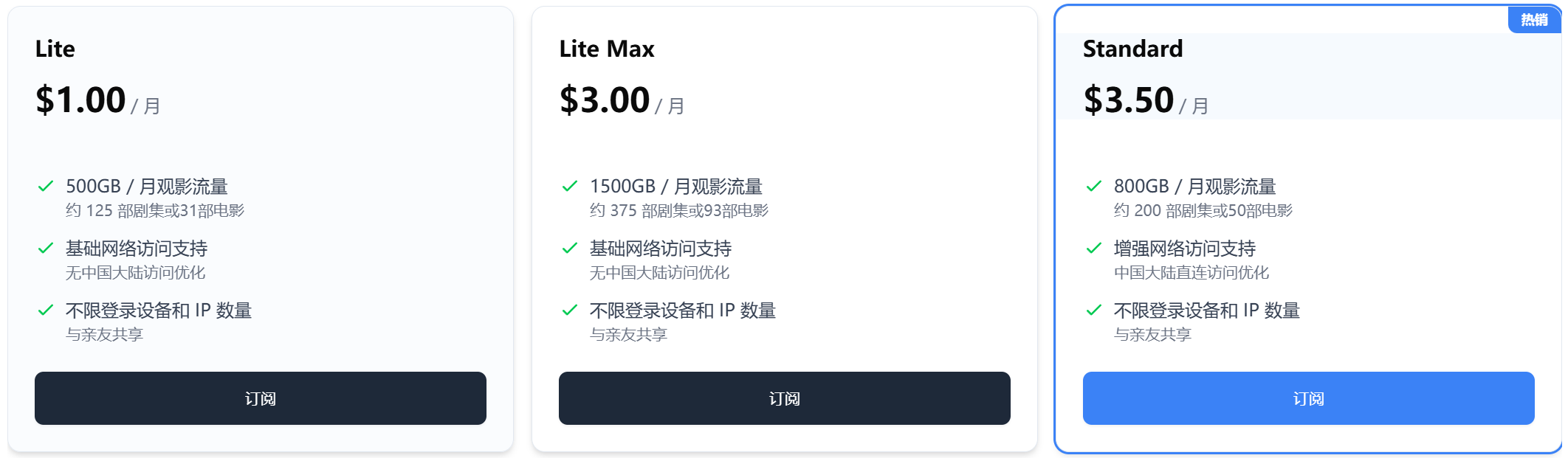 UHD,这是一个很多人推荐的公费服,使用体验很好,最便宜的套餐1刀一个月,流量有500G。