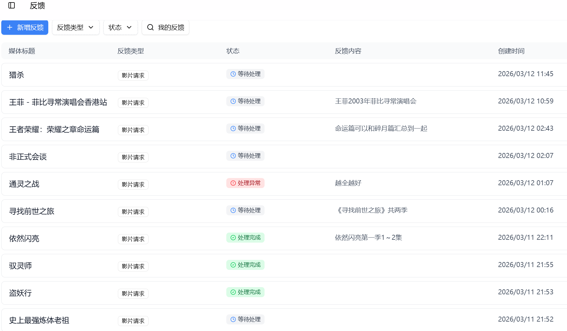 如果没有你想看的影片,可以去求片反馈,总的来说速度很快,1-2天就能更新。