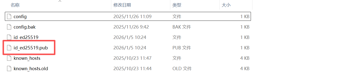 进入生成的密钥保存目录(通常在 C:\Users\用户名\.ssh\),用记事本打开以.pub结尾的文件(如 id_ed25519.pub),复制其中的全部内容。
