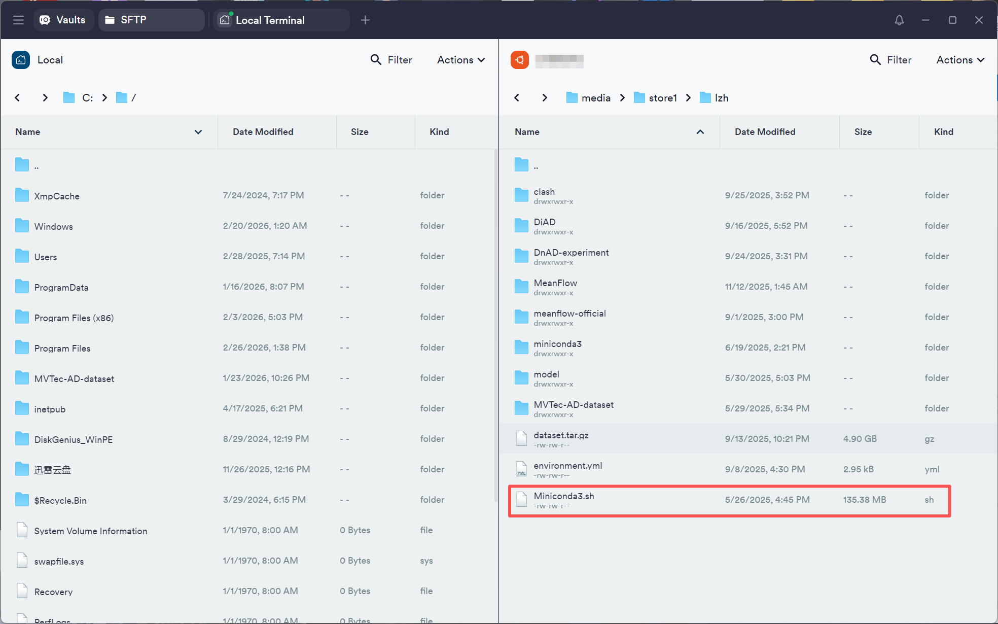 如果不小心进行了误操作,可以直接在 SFTP 页面,直接删除整个 Miniconda3 的文件夹,或者执行文件夹内的 uninstall.sh 文件。