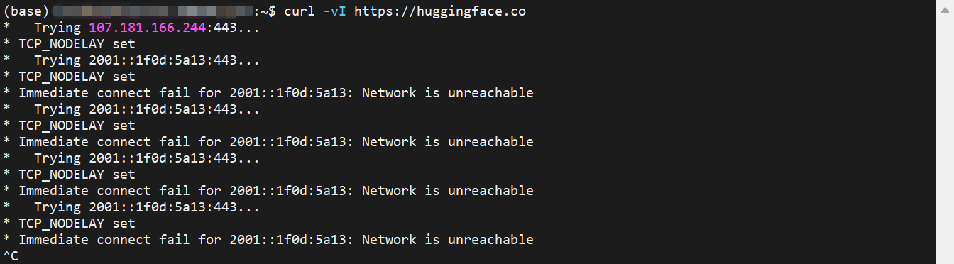 登录服务器,尝试访问 Hugging Face,此时通常是无法连接的。