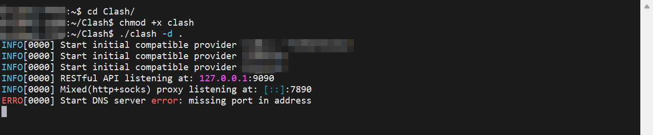 tmux或screen中运行./clash -d .,使其一直在线。 - 端口冲突:如果同一台服务器有多人使用此方法,